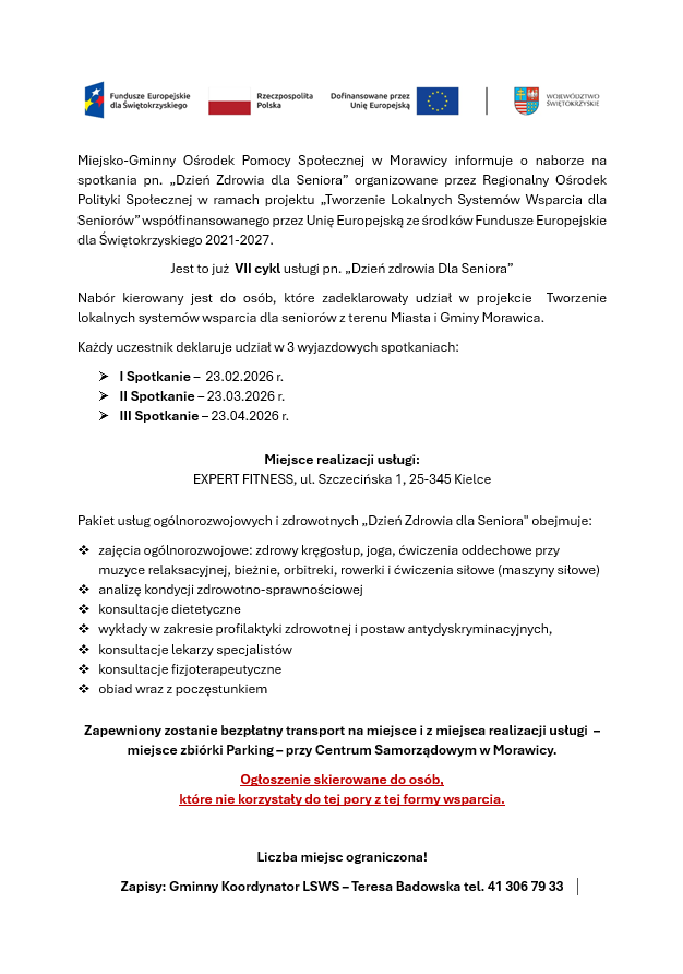 Kierownik Miejsko-Gminnego Ośrodka Pomocy Społecznej w Morawicy zaprasza do złożenia oferty na wykonywanie specjalistycznych usług opiekuńczych dla osób z zaburzeniami psychicznymi w 2026 r.